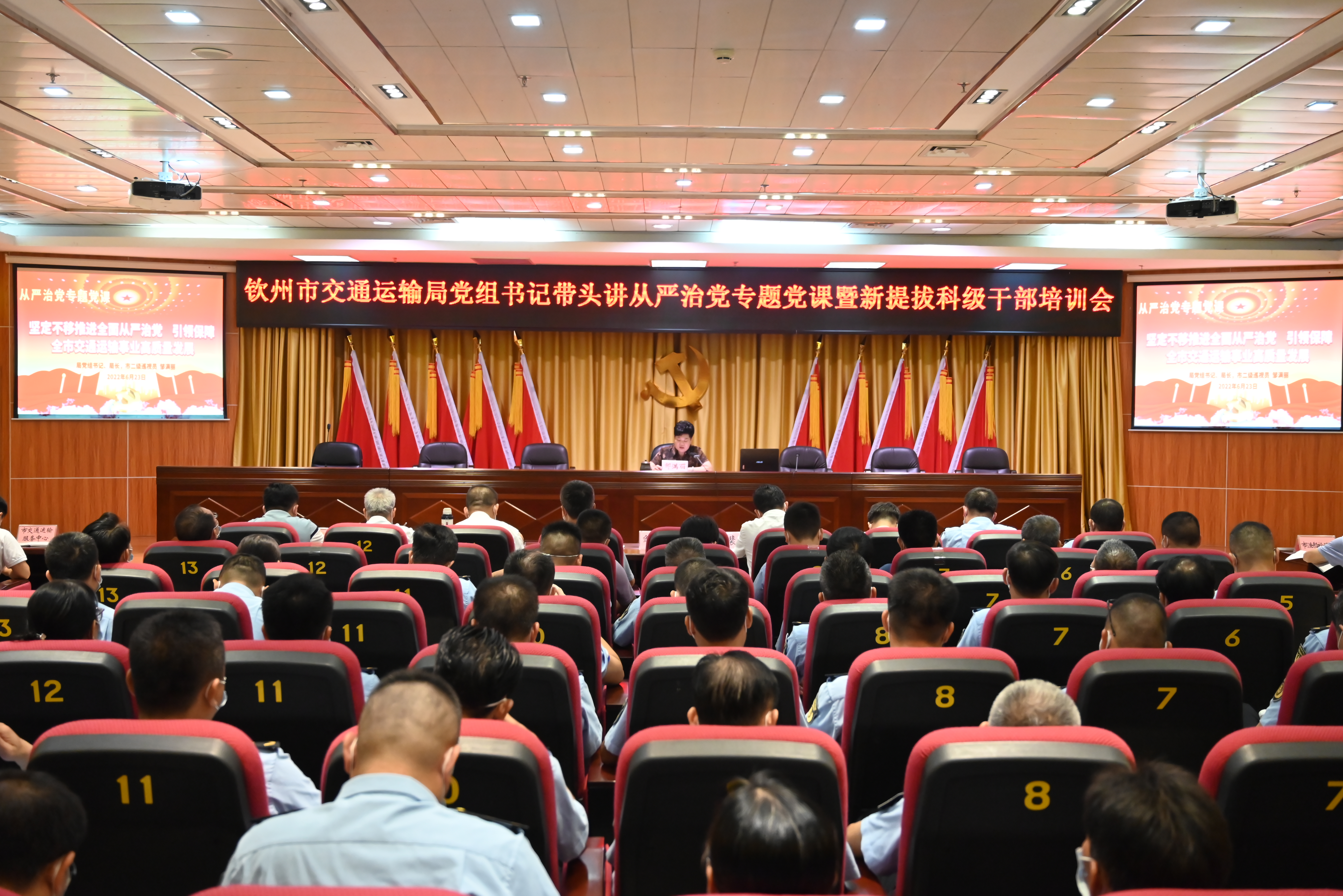 根据市委关于党委(党组)书记带头讲从严治党专题党课的部署安排,6月23日,市交通运输局党组书记、局长,市二级巡视员邹满丽以《坚定不移推进全面从严治党 引领保障全市交通运输事业高质量发展》为题,为市交通运输局全体党员以及2021年机构改革以来局机关及局属单位新提拔的20名科级干部上了一堂专题党课。
