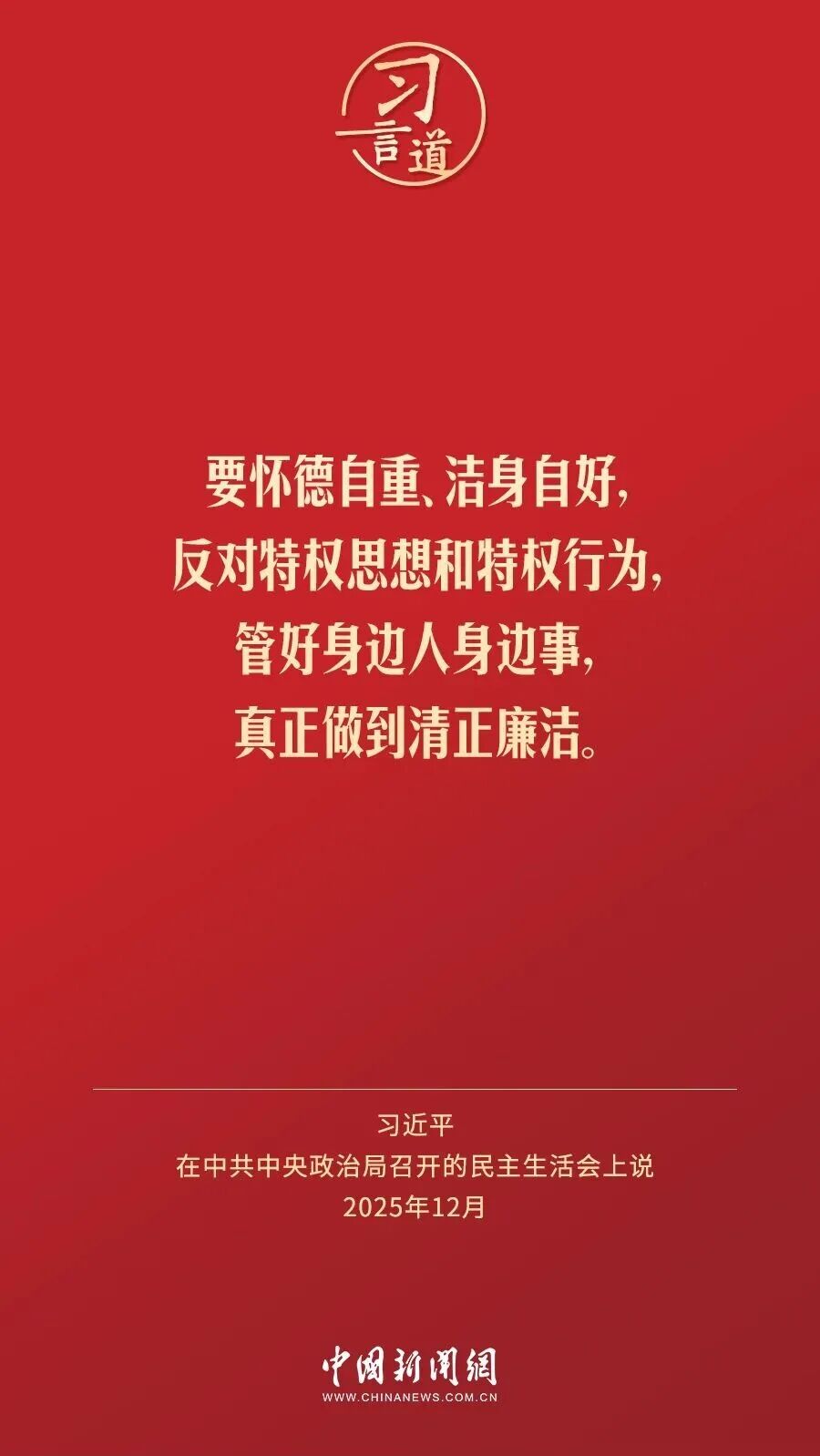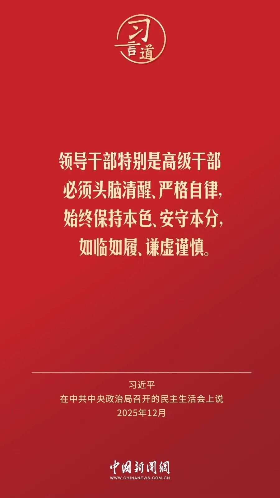 12月25日至26日,中共中央政治局召开民主生活会,中共中央总书记习近平主持会议并发表重要讲话。习近平强调——