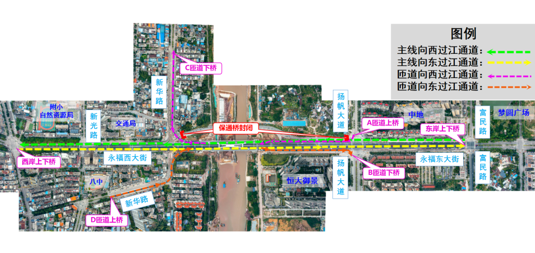 永福大桥及周边路段交通组织调整示意图