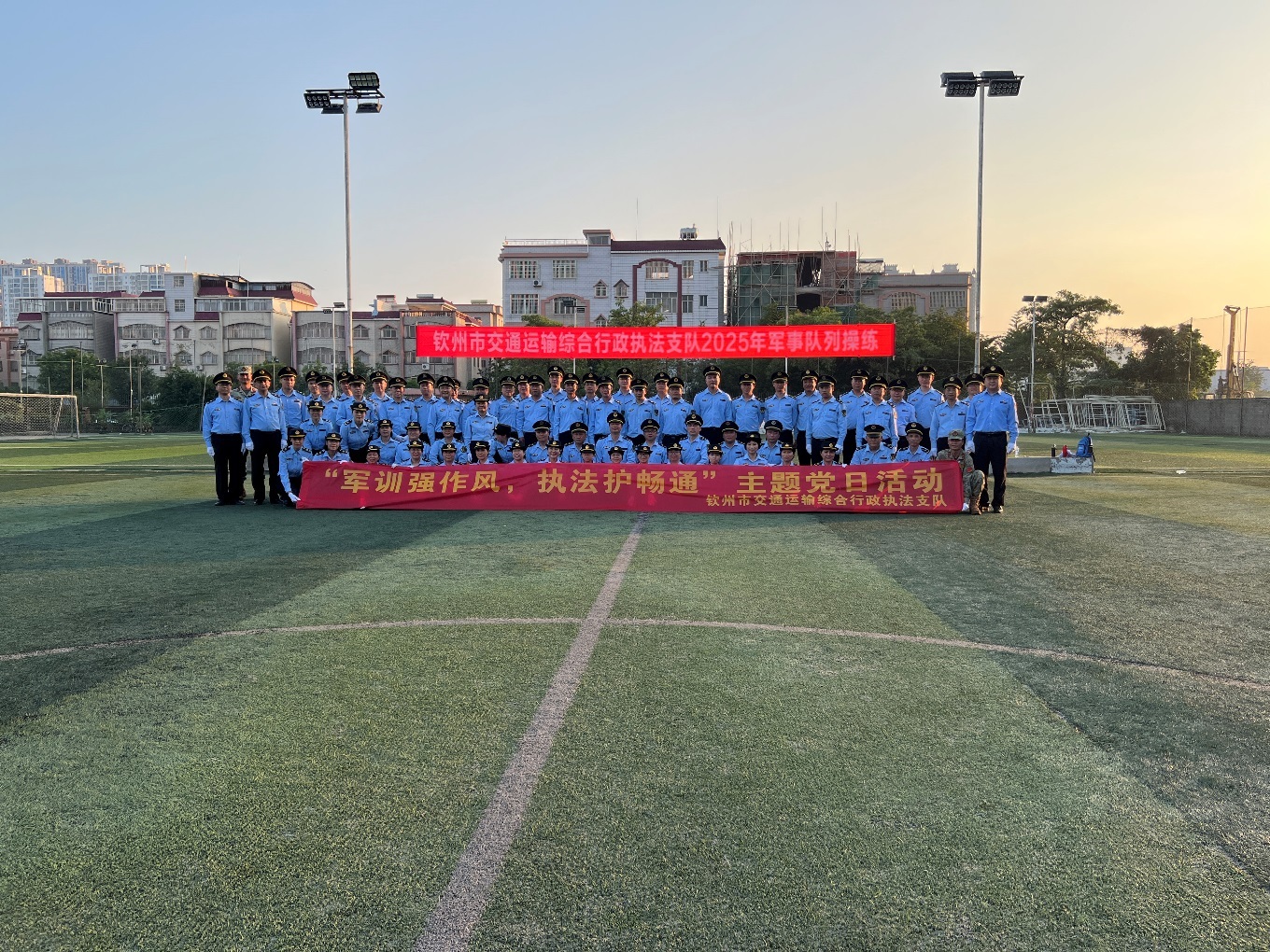 为深入锻造一支政治坚定、素质过硬、纪律严明、作风优良、廉洁高效的新时代交通运输综合行政执法队伍,全面提升执法人员的专业形象与履职能力,钦州市交通运输综合行政执法支队于2025年11月下旬至12月中旬,在超越球馆足球场正式启动年度执法人员集中军事队列操练,本次军事队列操练分两批次开展。