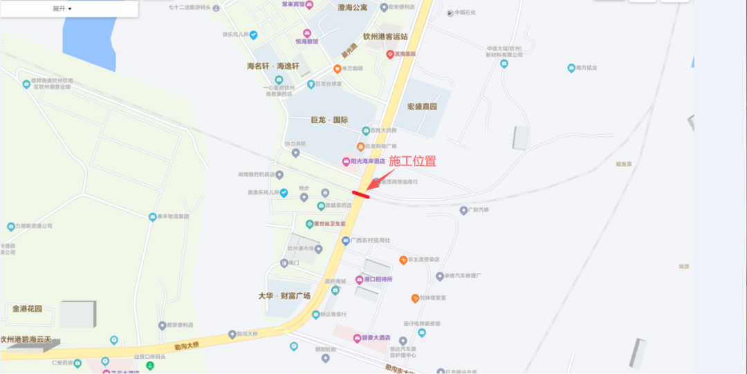 第二步:封闭钦州港进港大道(钦州港往勒沟作业区左侧,既有道口10米)进行施工作业。