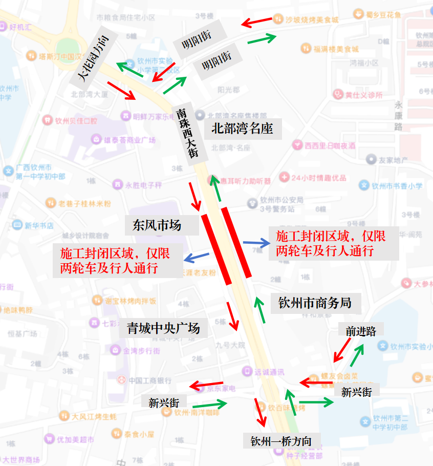 南珠西大街辅道(民乐路至市商务局路段)交通管制示意图