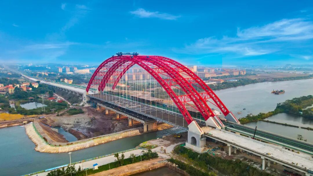 12月4日,平陆运河G75兰海高速钦江大桥左幅格子梁顺利合龙。