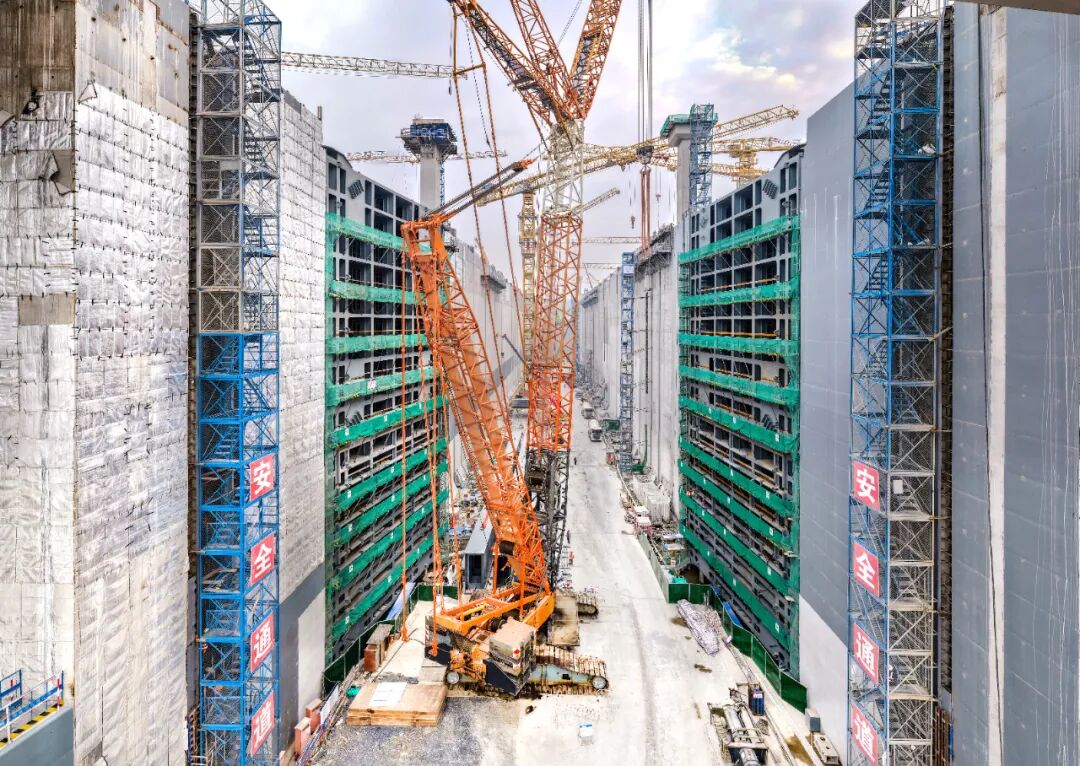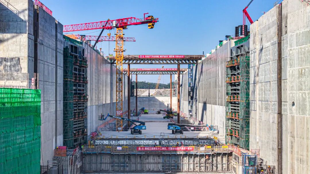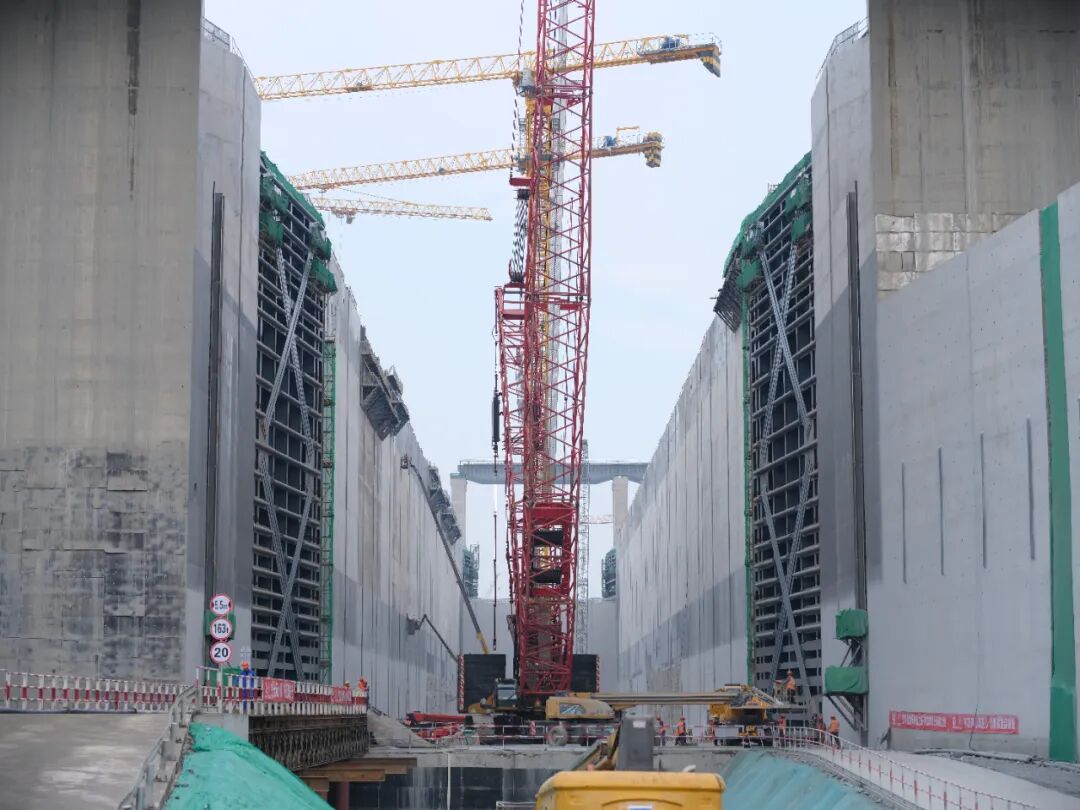 平陆运河三大枢纽共需安装24扇人字门,单个船闸上、下闸首各设置一套双门叶人字门,其中单扇门叶最大重量约1108吨,高度达39.08米。作为实现船闸运行的关键挡水设施,人字门承受着高水头差的水压力,直接关系通航建筑物设施及进出船舶的安全,为航运的顺畅高效提供重要支撑。