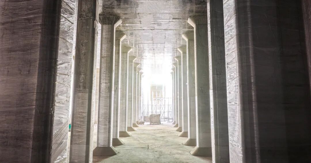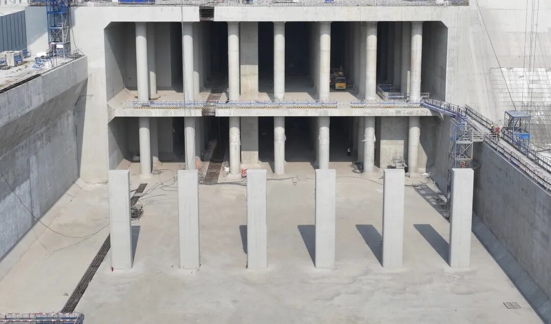 地面之上,巨型船闸巍然矗立;地表之下,一个由钢筋混凝土支撑柱构成的“地下森林”已然成形。在平陆运河马道枢纽、企石枢纽省水船闸的施工现场——上千根支撑柱整齐林立,共同托举起上方庞大的省水池结构,它们将为船闸运行时流转的万吨水体提供坚实的支撑。