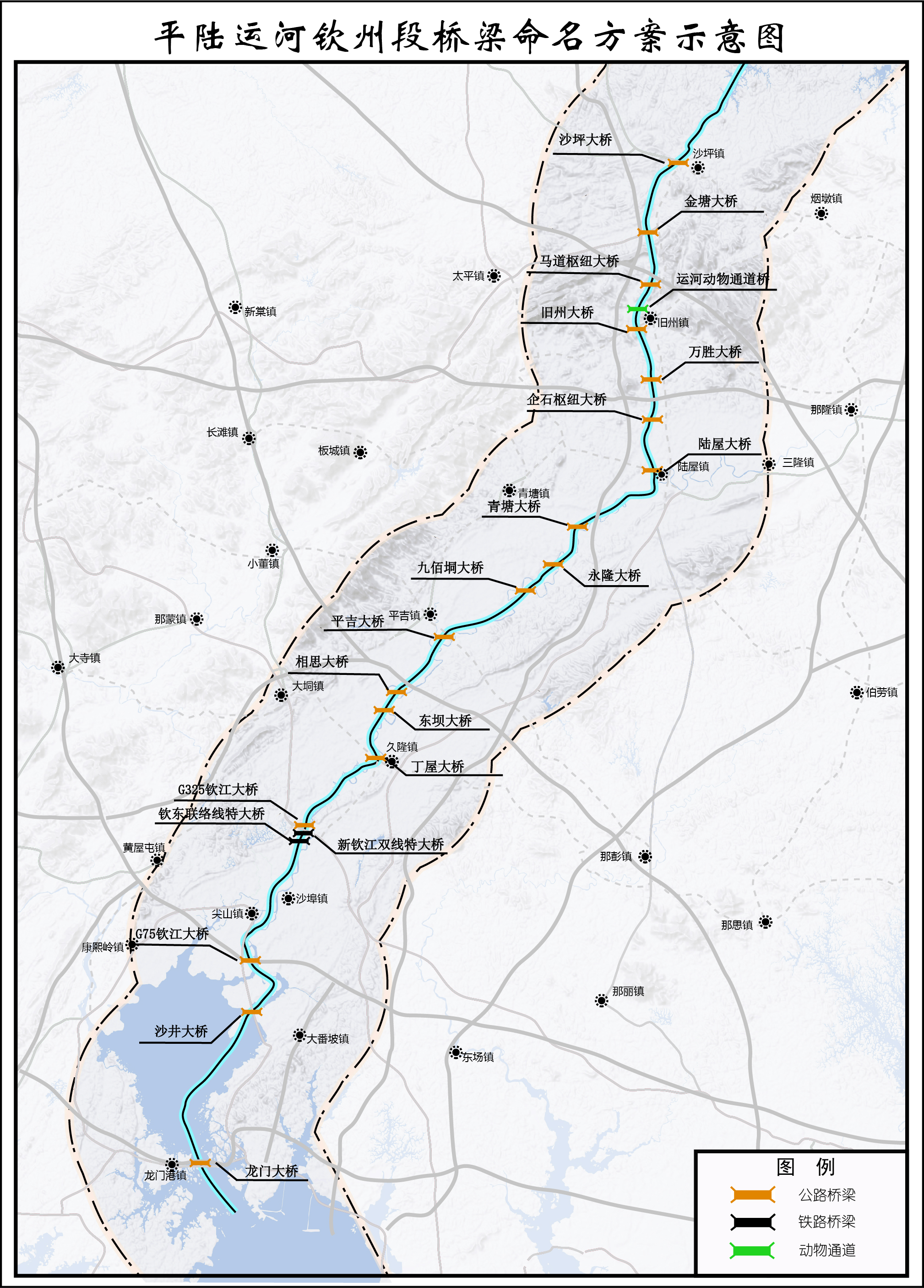 2.平陆运河钦州段桥梁命名方案示意图